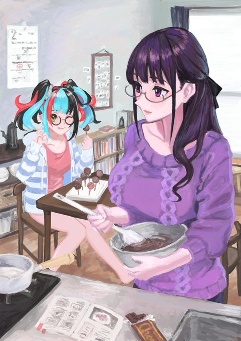 平安OL礼装最高だった。自宅でチョコ作りをする2人です。バレンタインイベが終わるまではバレンタイン。 #紫式部 #清少納言
