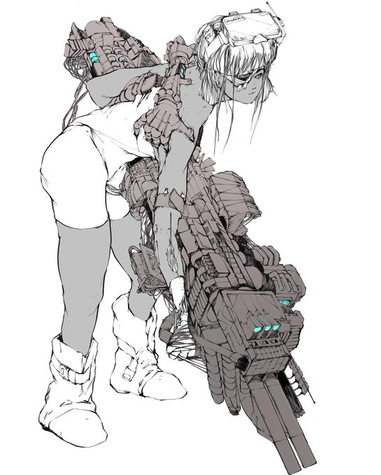 I can lift this once. After that you’re on your own. #cyberpunk #scifi #artistsontwitter #manga #originalcharacter #イラスト
