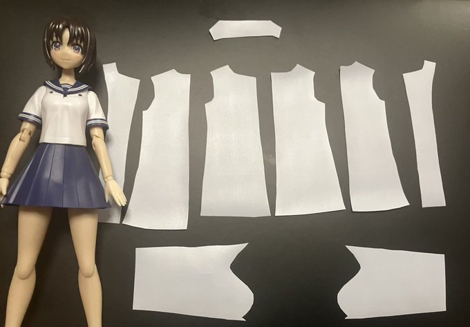 #ウマ娘造形部 馬人間改造パーツが入手できたので作成していきます。配管テープに縮小した型紙を合わせて切り出しました。これで白衣を作っていきます。