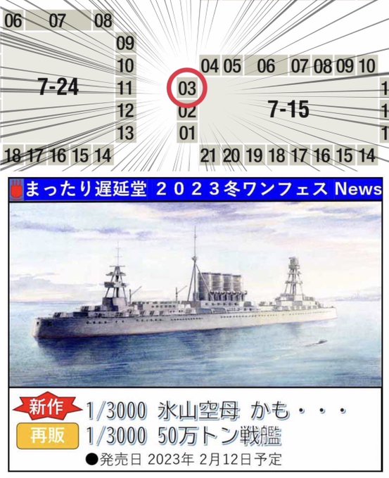6 6 #wf2023w 友人と3年ぶりに1/3000 50万トン戦艦を販売します。あと氷山空母もだすかもしれません。 22/12/14 22:16