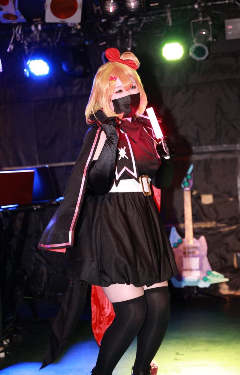 11 55 #マクナイ ステージに上がらせてもらって楽しそうな私😌🎶 踊れるデブ目指してます✌️(痩せろバカ) 最初はランカの黒うさぎ衣装をフレイアで着るのを迷ってたけど、着て正解超楽しかった🥰 みんなもどんどん捏造、オリジナル衣装もやってこうよ🥺 撮影📸@khanda0010 23/02/06 23:08