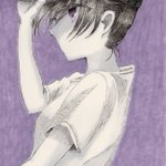 梅雨の頃のイメージで描いていた瑞泉ことずいくんの絵 紫の影を先に全体に塗ったり、下書きよりも暗い雰囲気になった気がして描いていて楽しかったです✏️ #オリジナル #創作イラスト #色鉛筆