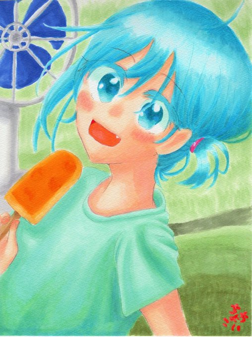 玉のれんの後の寛ぐ心 アイスがうまく塗れた気がする🍦 #オリジナルイラスト #コピック