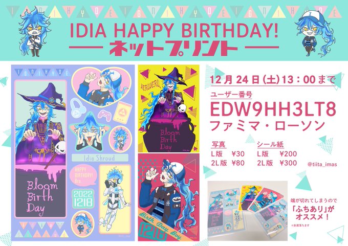 イデアくんお誕生日おめでとうの気持ちと、オンリーが楽しくて自分も何かしたいな〜と思ったのでネップリ登録しました☺️よければどうぞ! ローソン・ファミマ/ユーザー番号: EDW9HH3LT8 L版 期限: 2022-12-24 13時頃まで #イデア・シュラウド誕生祭2022 #イデア・シュラウド生誕祭2022