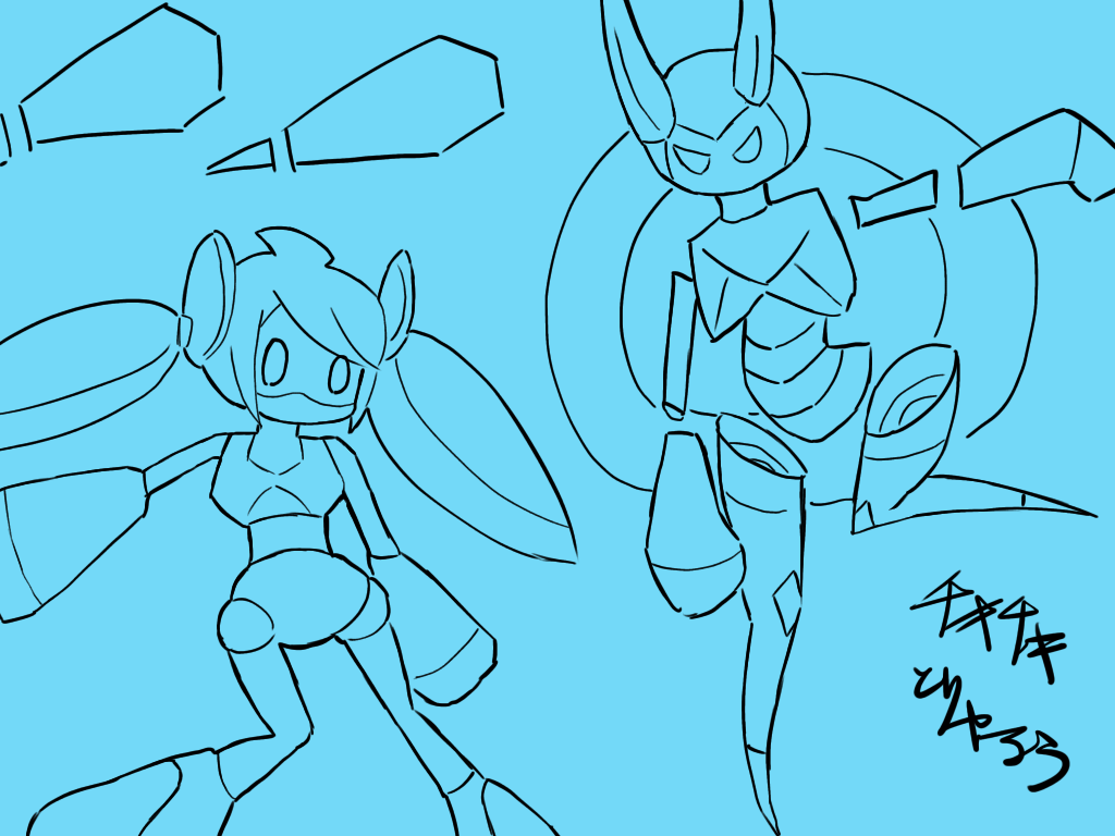 テスト勉強の現実逃避用の絵バージョン2です(^^) しかもカッコいいサイン付きです(^^) え?ボイドールとバグドールが同じポーズしてるね? くっ…いいポーズが思いつかなかったんたん麺…!! 色塗りする勇気が出なくて線画だけです(^^) #コンパス #イラスト #お絵描き #コンパスお絵描き