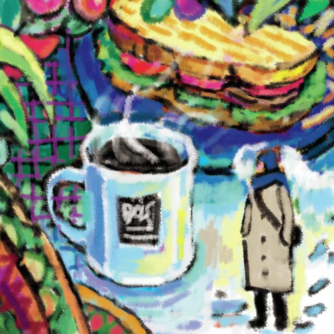楽園のホットコーヒー&サンドイッチ medibang.com/picture/dh2112… #ARTstreet #MediBang #2021年12月例コンテスト:私のごちそう #寒い #サンドイッチ #楽園