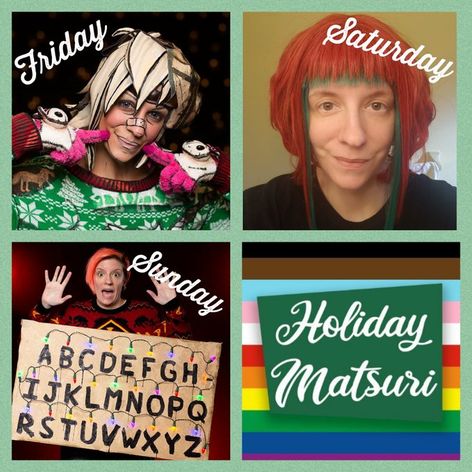 HolMat is a week away, might as well post my lineup! Not 100% sure I'll wear the alphabet wall on Sunday, I'll see how I feel. Left photos: @elysiagriffin #Christmas #cosplay