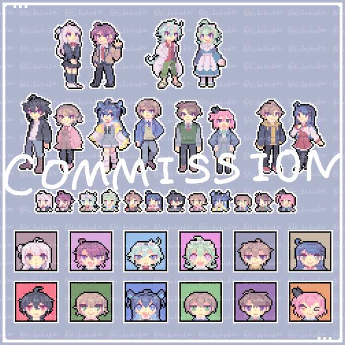 Skebで描いた作品の紹介です🙇♂️ リクエストありがとうございました!✨ 関係性が気になる子たちばかりで、見ていて楽しかったです😊 #Commission #pixelart skeb.jp/@tikokuda/work…