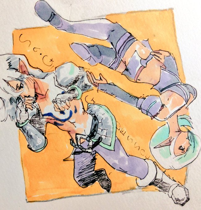 #サガシリーズ版深夜のお絵描き一本勝負 GODの好きなキャラということでしたので褐色エスパーガール&ボーイです🧝🏽♀️🧝🏽♂️