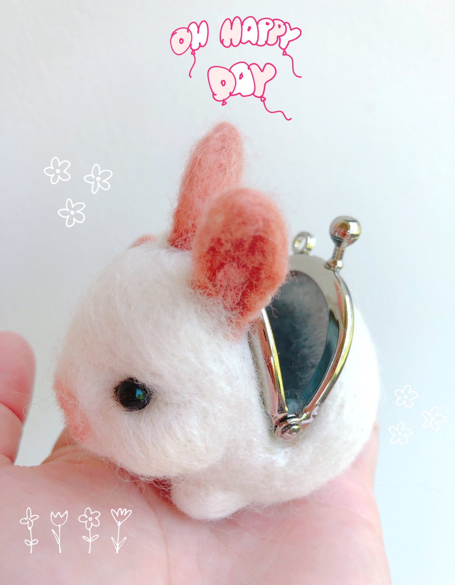 ふわふわうさぎのがま口コインケースできました🐰 ぬいぐるみみたいだけど 実はコインケースなんです👛 アクセサリーケースとしてもお使い頂けます🐰 #春の新作デー2020 @minnecom minne.com/items/20479229 #うさぎ #羊毛フェルト