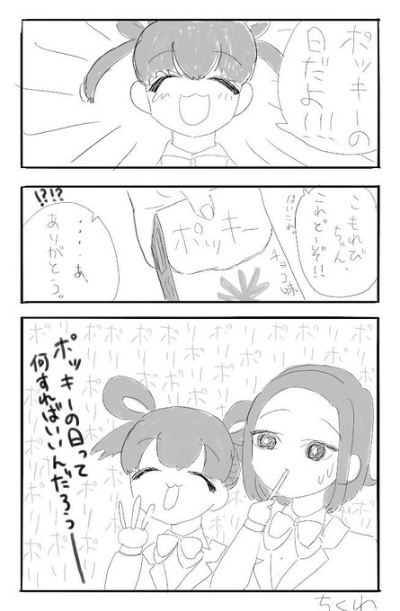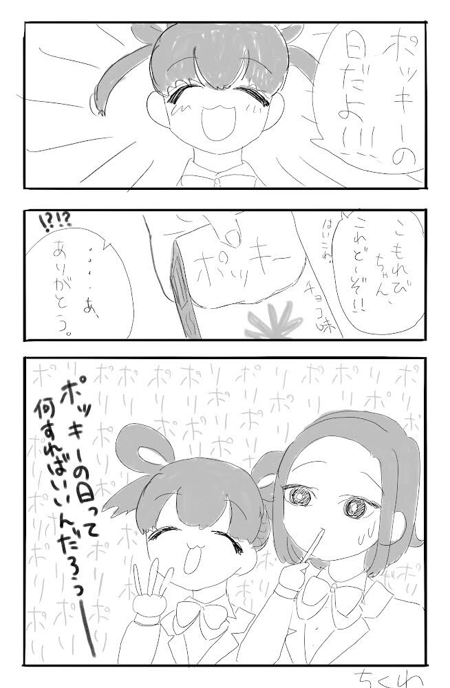 ポッキーの日の進美ちゃんとこもれびちゃん落書き🍬🍭🍫