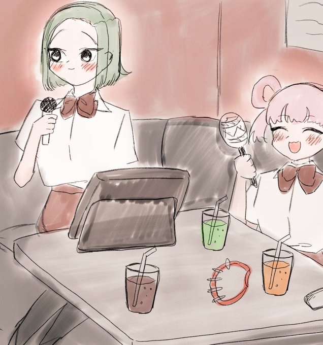 あおいちゃんは前に出て歌ってそうな1年3人組のカラオケ落書き🎤🎤🎤
