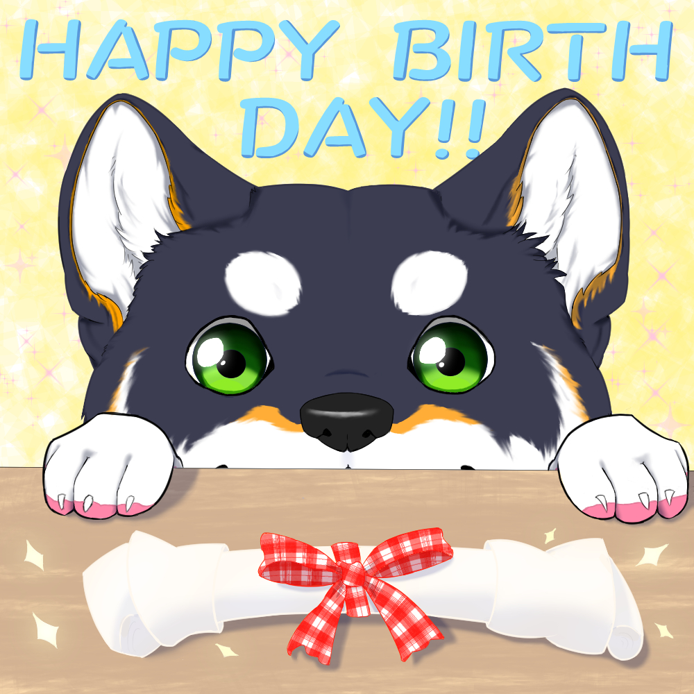 しばちゃん4周年おめでと~!! 5年目もよろしくね!! #黒井しば #しばのドッグタグ