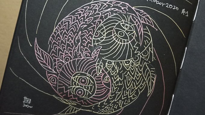 Late ng isang araw ang pagpost ko rito, "premiere" sa IG pero ewan kung mapapanindigan ang arawan o every other day o anuman. Anw, heto ang "dualitilapia" #metallicink on #blackpaper para sa #fish prompt ng #inktober #inktober2020 ; yung next sisikapin maintegrate sa #OUSTober 🤔