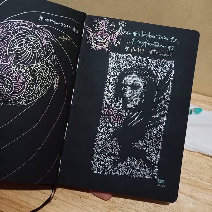 Light & shadow. Medyo daya, torn sa #inktober #inktober2020 & #kayfabetober ! Did both anyway #wisp #thecrow #spiritoffire #haoasakura #shamanking #fanart #metallicink on #blackpaper ; spoiler: mas direct nang slight social reli ng entry rn @/statusymbols IG (will post here tmrw)
