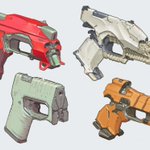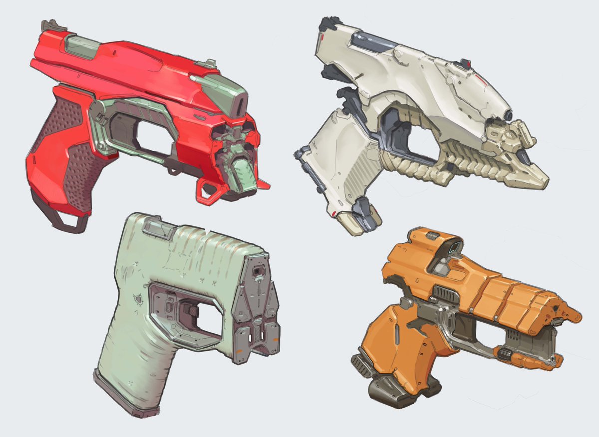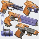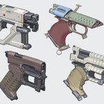 I have updated this collection of guns. The one on the top left uses liquid propellant. The one in the middle is called "the compensator". Is there one you would pick for your scifi adventure?