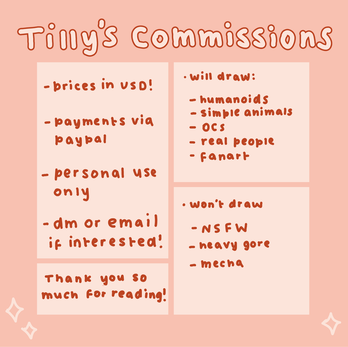 Updated my commission sheet! More examples/info avaliable on my carrd tillymallow.carrd.co :) (also thank you too @NerdyLama_ for letting me use my art of their oc Saga on the third image!) #art #digitalart #ArtistOnTwitter #Commission #ArtCommission #commissionsopen