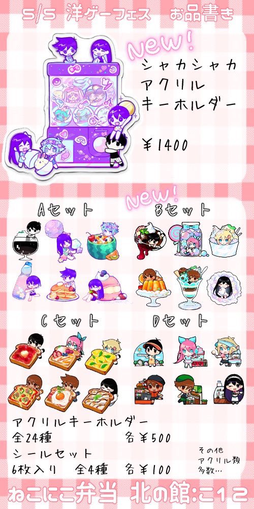 28 98 洋ゲーフェスお品書きです! (現物写真はメディア欄にあります!) 北の館:こ12にスペース頂きました! お品書きに載ってない過去の作品も、在庫があるものは僅かですが出します~! よろしくお願いします☺️ #洋ゲーフェス 22/04/17 21:46