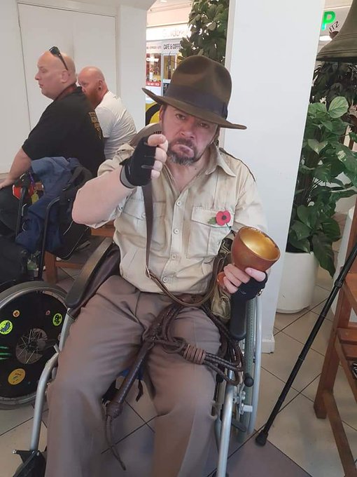 Being in a #wheelchair needn't stop you doing what you love. Cosplaying Indiana Jones for charity last November #cosplay #disabledcosplay #MS