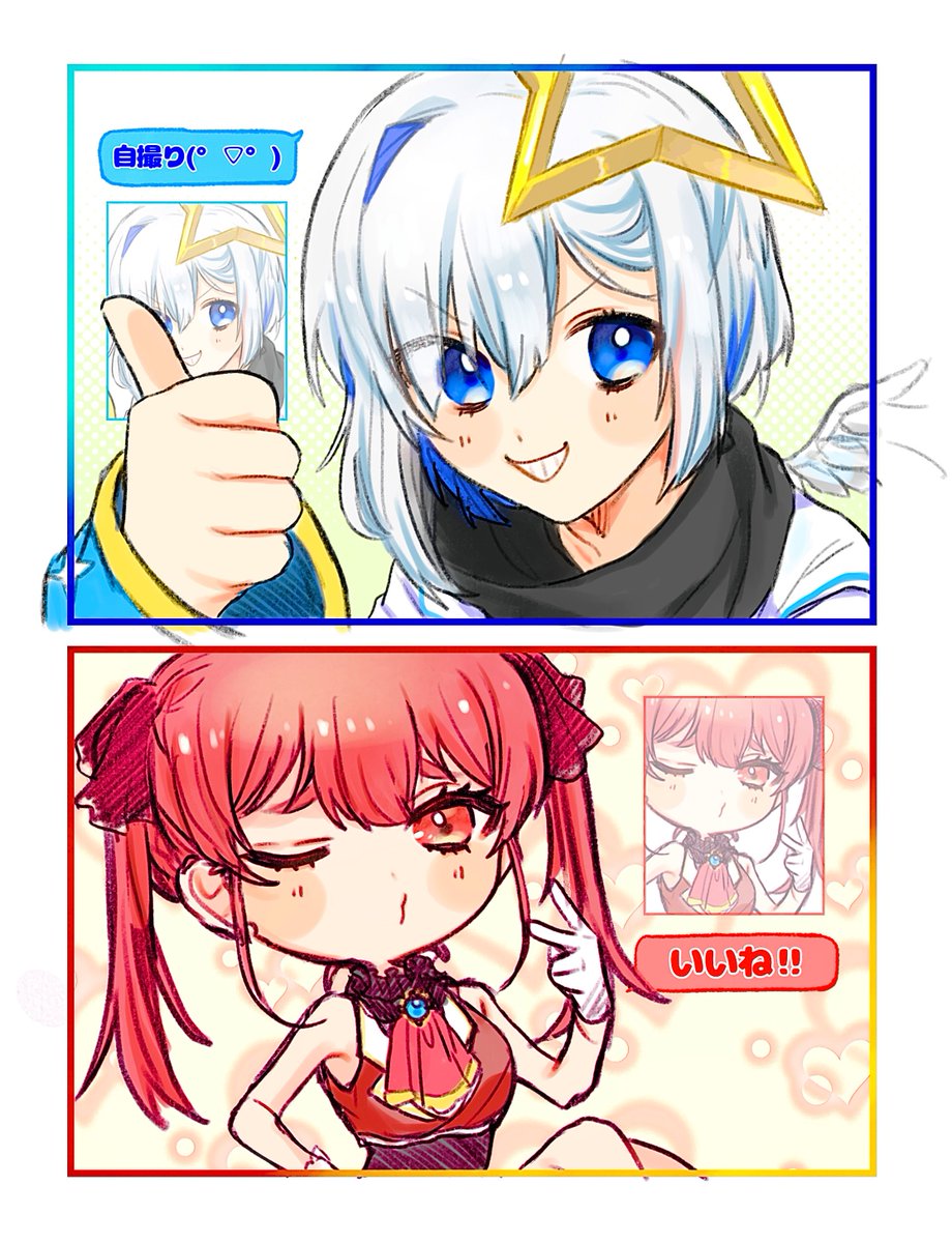 自撮り送りあってる2人が可愛いfa💙❤️ #マリンのお宝 #かなたーと