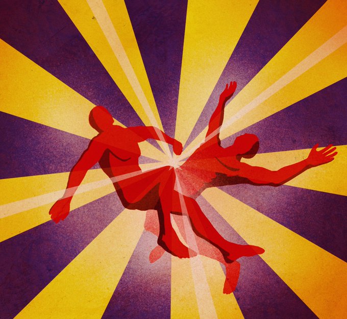 Day 17: “Collide” — I was trying to go for a sort of art-deco / Russian revolution propaganda art look… #inktober2021 #inktober2021day17 #inktober2021collide #inktober2021day17collide As before, it was hard to pick from color and position variations…