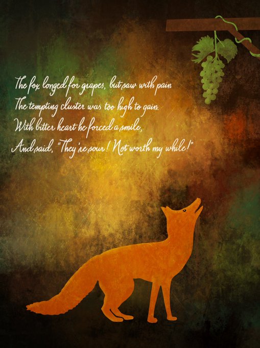 Day 11: “Sour” — my illustration of the origin of the term “sour grapes”! #inktober2021 #inktober2021day11 #inktober2021day11sour #inktober2021sour