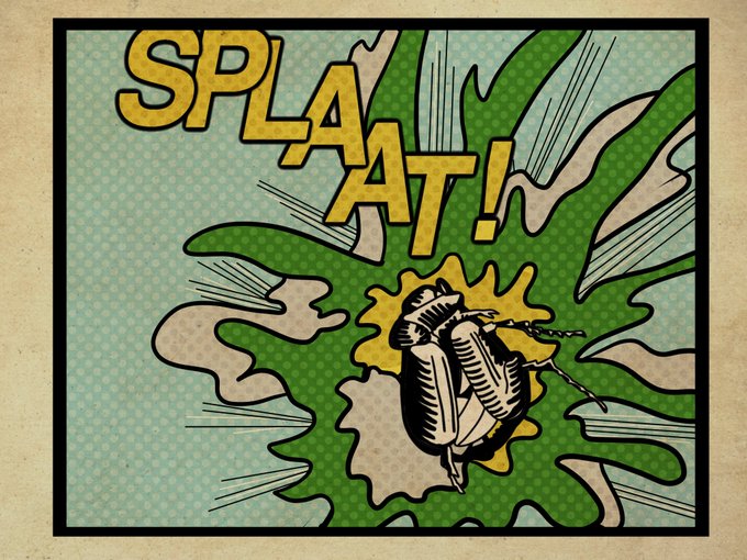 Day 25: “Splat” — an homage to Roy Lichtenstein’s pop art classic, “Whaam!” #inktober2021 #inktober2021splat #inktober2021day25 #inktober2021day25splat
