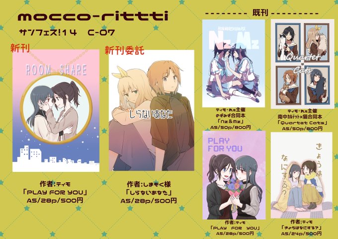【新刊告知】11/21開催のサンフェス!14にてのぞみぞ本を頒布します。大学生のぞみぞ2人暮らしの話を2本描きました。優子と夏紀の家で飲み会する話と、みぞれが留学する話です。よろしくお願いします!🐡A5/28p/500円 ↓通販はこちら🍈melonbooks.co.jp/detail/detail.…