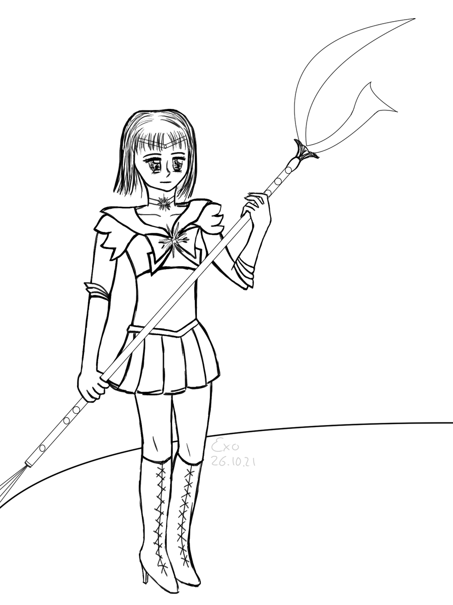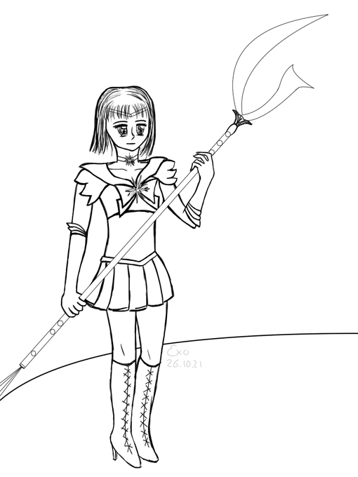 Tag 26: Heute kommt Sailor Saturn 🥰 #Inktober #art #SailorMoon #SailorSaturn #CLIPSTUDIOPAINT #blackandwhite