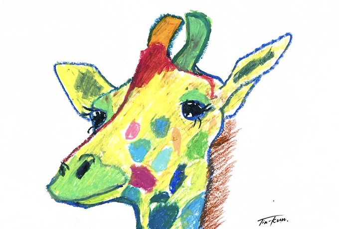 0 23 キリン サイズ八つ切 #クレパス画 #サクラクレパス #絵描きさんと繋がりたい #絵描き #パラリンアート #ティンくん 23/01/14 18:00