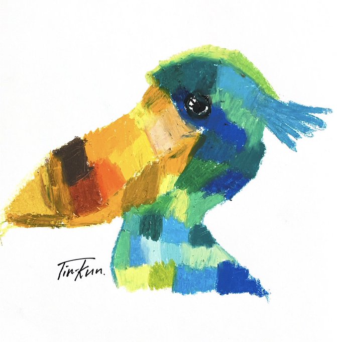2 16 サイチョウ サイズ八つ切 #クレパス画 #サクラクレパス #絵描きさんと繋がりたい #ティンくん #パラリンアート 23/04/14 18:38