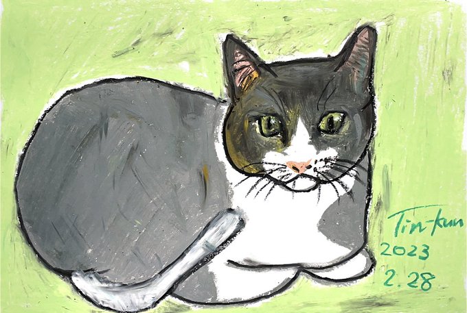 1 15 猫 サイズ八つ切 #クレパス画 #サクラクレパス #絵描きさんと繋がりたい #ティンくん #パラリンアート 23/01/04 19:28