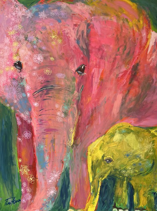 4 11 ぞうの親子2023年バージョン サイズF30キャンバス 何年か前に描いたぞうの親子の絵を塗りつぶしました。 前の方が良かったかな?…でも自分はとても満足してて、描いていてとっても楽しかったです。 たくさんの人に届いて欲しいです。 #アクリル画 #ティンくん #パラリンアート 23/04/13 18:34