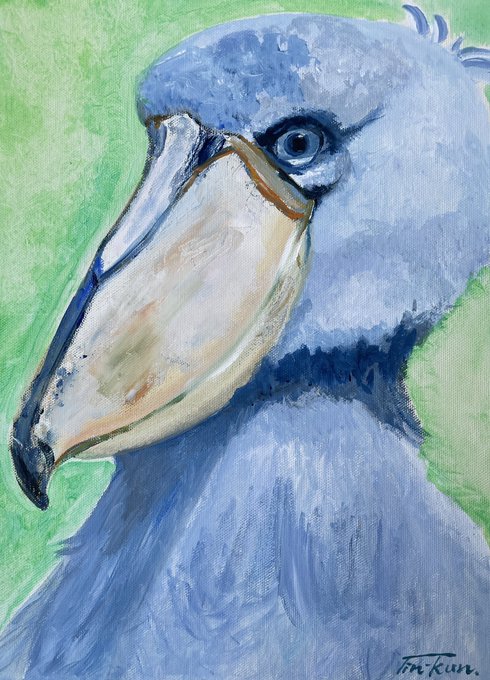 0 21 ハシビロコウ 今日から5月か〜 サイズF4キャンバス #アクリル画 #絵描き #絵描きさんと繋がりたい #パラリンアート #ティンくん 23/05/01 19:16
