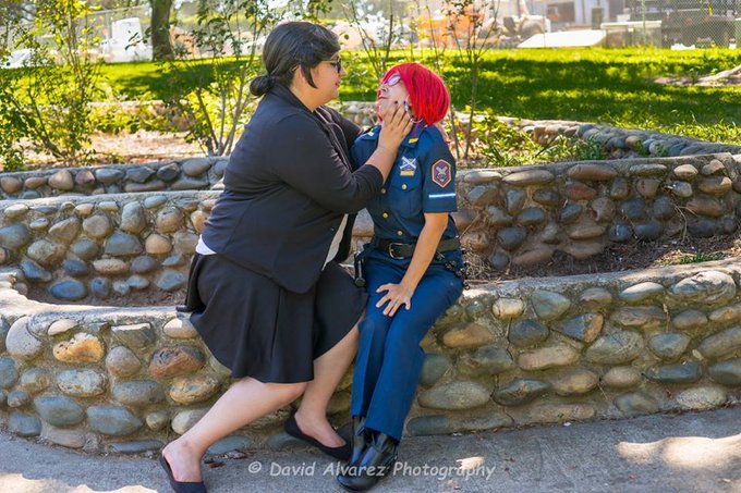 Have some more cop! Grell, but make it 🔥. cop! Grell = me modern! fem! Claude = @miss_artist_rhi RIP David Alvarez! (I'd link his page, but it no longer exists.) #cosplay #Hispaniccosplayer #disabledcosplayer