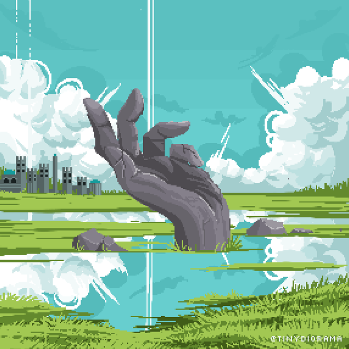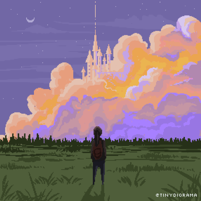I didn't realize we were doing another #portfolioday already lmao - I sometimes throw pixels together to make surreal landscapes and dreamy scenes! #pixelart