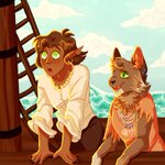 redraw of an older piece that i literally always hated...i had to do this or it'd bother me forever. ft. my wood elf bard, qiran, and his old tabaxi friend/brother, quill ^_^. they were pirates (original below) [ #DnD #dndcharacter #dndart ]
