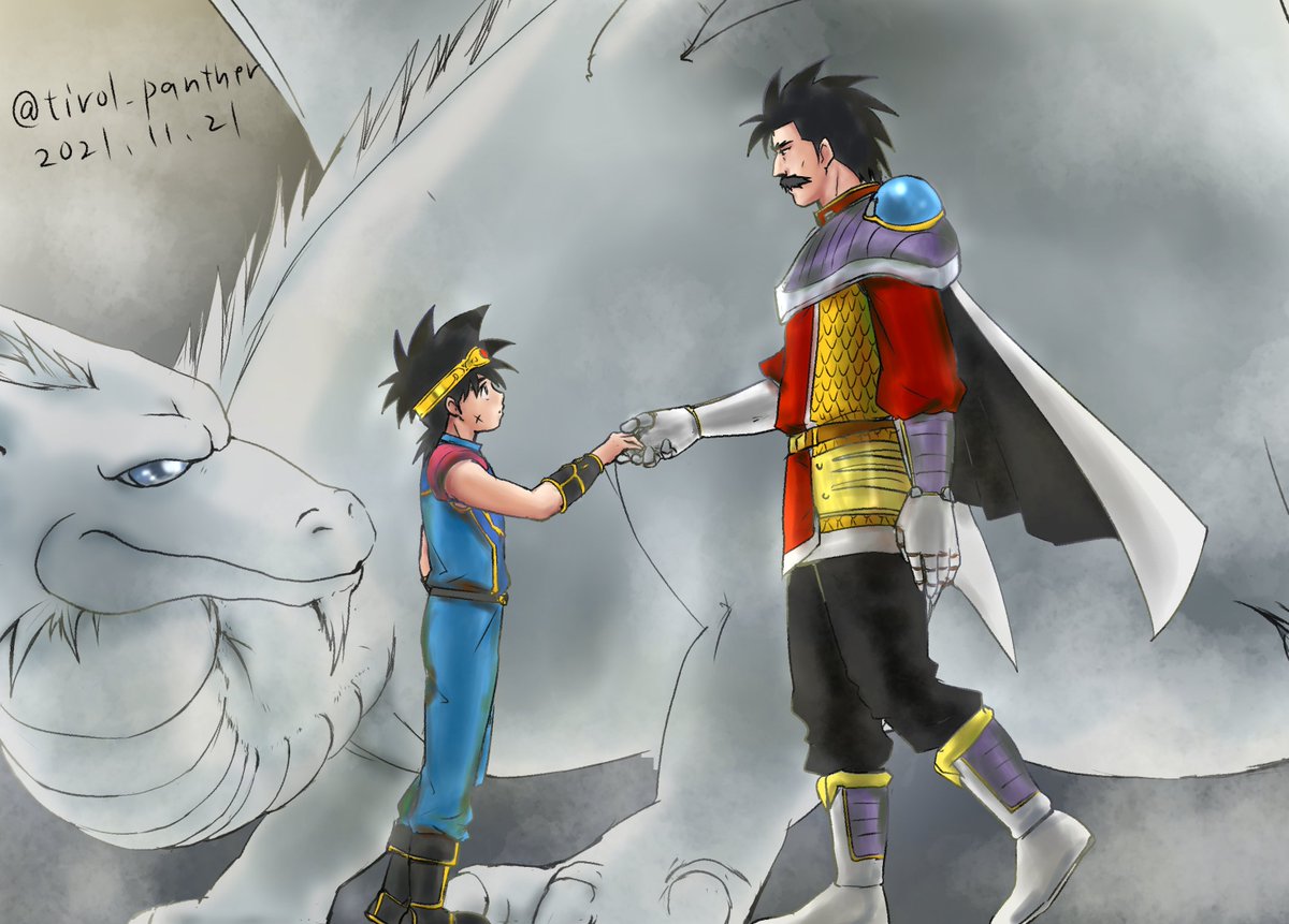 なにやら惰眠さん @dmmr_dai のお誕生日が近いと小耳にはさみましたので、不肖チロル、以前リクエストでかなえてくださったバランイラストの返礼に、イラストを捧げます。 お納めくださいませ😊 #ダイ大ハロウィン祭り #惰眠パッパ生誕祭 #ダイ大イラスト
