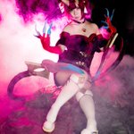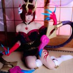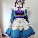 @hiyo_lolcos さんからのオーダーで LeagueofLegends Gwen✂カフェキューティーズの衣装を作らせてもらいました〜!😊 武器製作 @HikkiHs 久々のメイド服! フリルをたっぷりにしたり模様はキラキラのレザー、さりげなくパールやレースパーツ使ってます💕 #lolcosplay