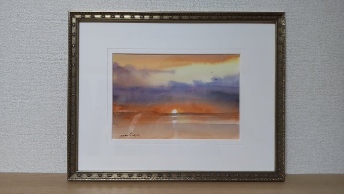 0 6 #小野月世 さんの「暮日」が届きました🌇 You Tubeで小野月世さんが描くタイムラプスを見て「これは実際に見てみたい」と思い 先日の個展で気に入って購入した作品です。 黄昏時の情景がとても良い雰囲気で、一日の締めくくりに眺めると癒やされます🙂 #水彩画 #絵画 21/10/14 21:23