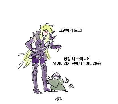 자기 피도 신의 피라고 세인트들 갑옷에 발라주려는 김사가 (ㅈㄹ)