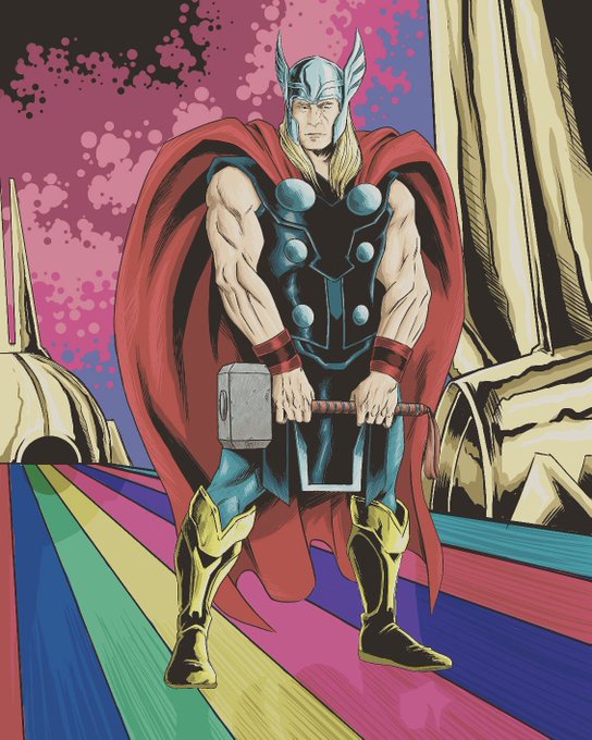 A ratitos me he hecho un #Thor mezclando detalles nuevos y viejos. #marvelcomics #digitalart #inktober #marvel