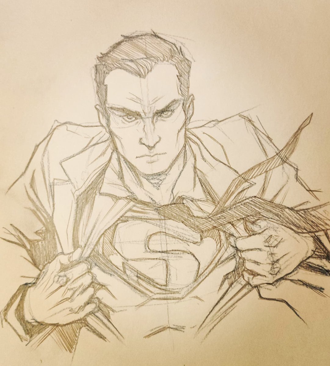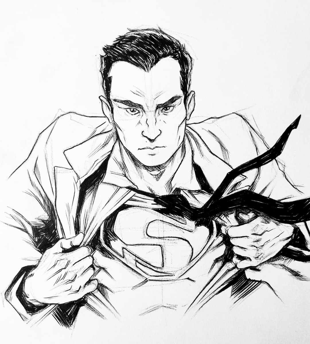 Segundo día ##inktober2021 No se me ha ocurrido mejor dibujo que hacer para #suit que uno en el que aparecen dos trajes. #superman #inktobersuit #inkart #dccomics