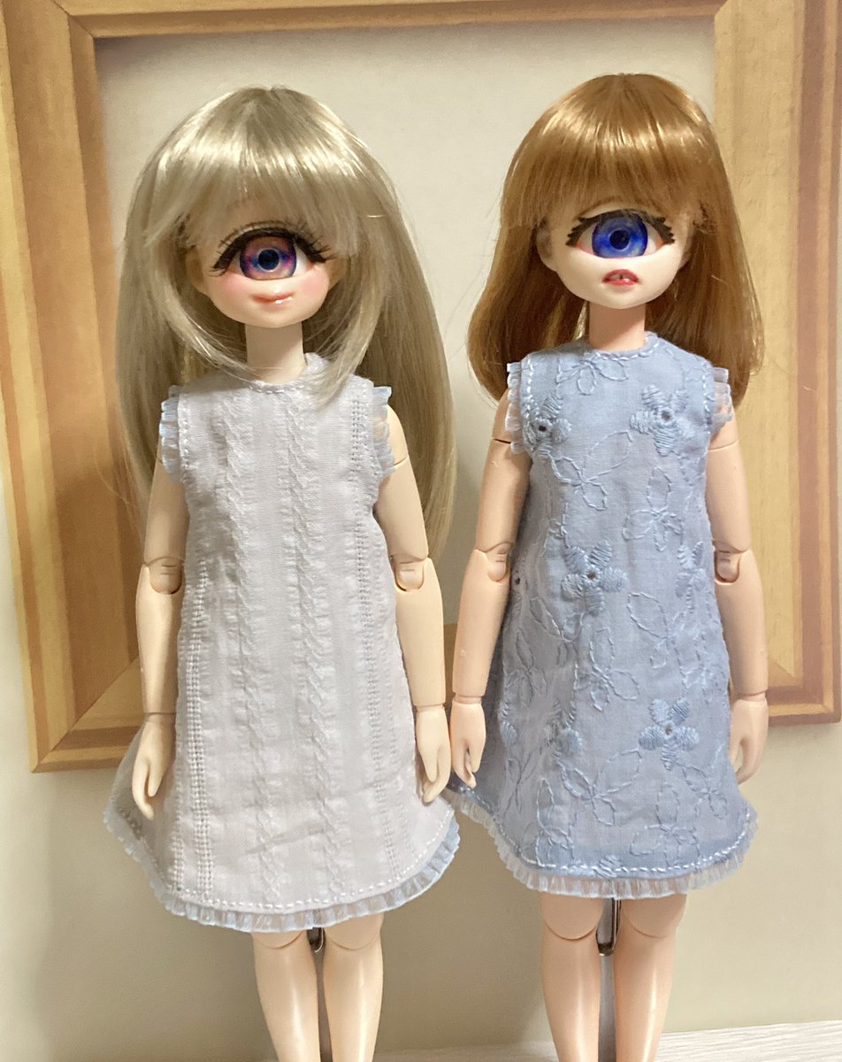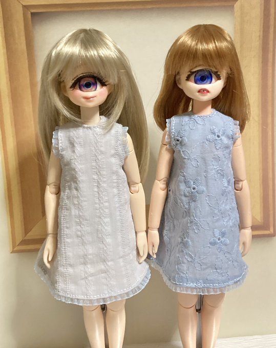 可愛いワンピース作ったから姉妹に着せて一緒にお写真撮ったらまさかのシャイニング #単眼ドール