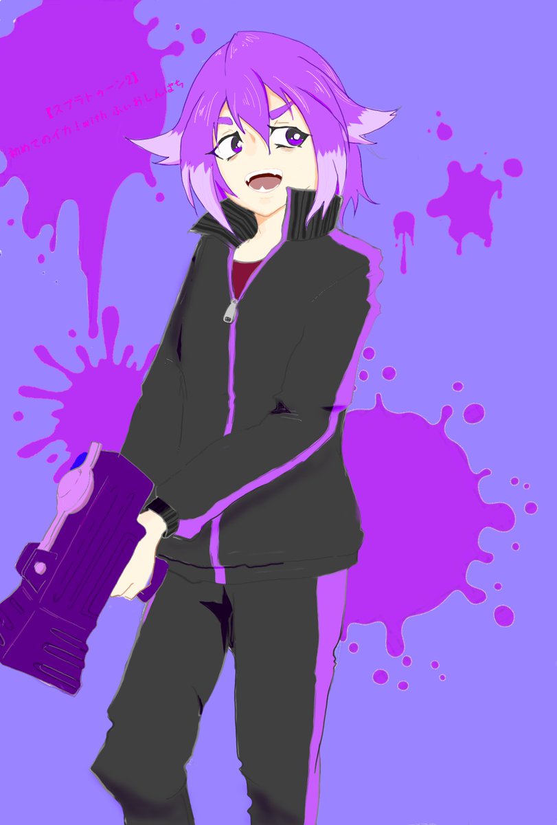 イカ配信嬉しくて描いてみた🥳 ローラーコロコロしてんのかわいかった☺️ ……🤔色塗りとかもろもろ修行します💪 #bintrollFA