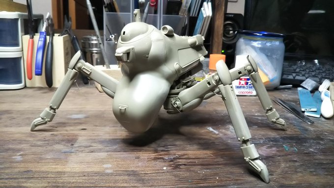 パチパチと組んでみました。分割もギミックも考えられてて、組みやすいですね。 これがプラキットです8000円前後で買えるんですよ。 ウェーブのグラジエーター後期型。 継ぎ目けしてから手摺りとか着けます。 #マシーネン