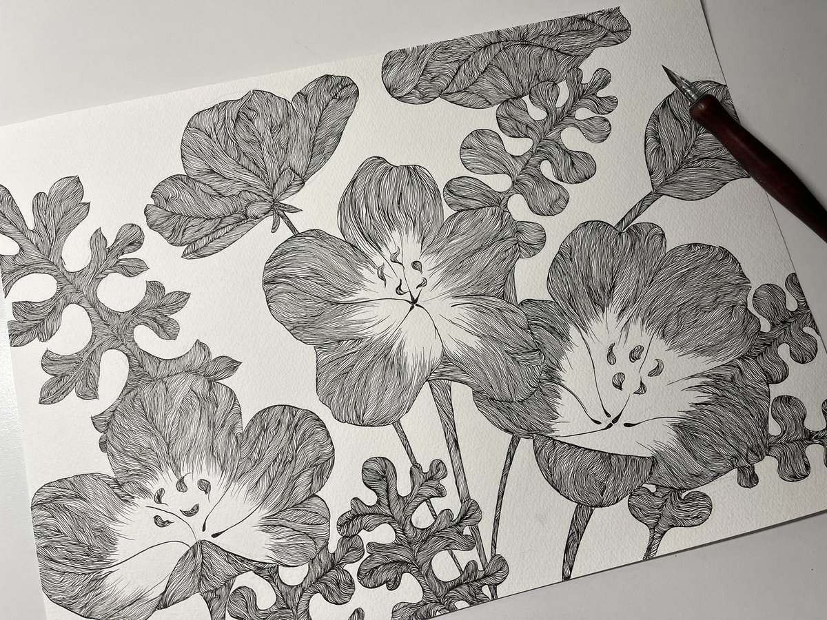 0 9 下書きと清書11 #アート #シクラメン #ペン画 #挿絵 #模様 #絵描きさんと繋がりたい 22/03/24 20:37