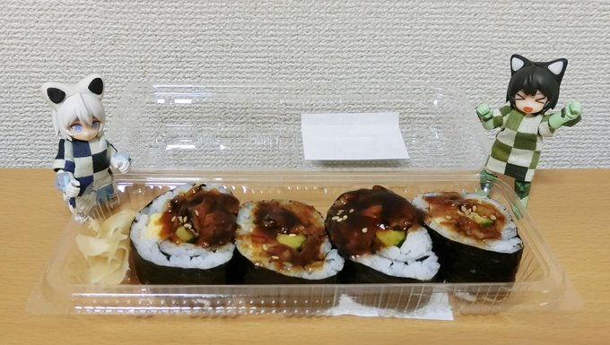 今日のお昼は穴子の太巻きです。 「あーなごー♪あーなごー♪」 #デスクトップアーミー