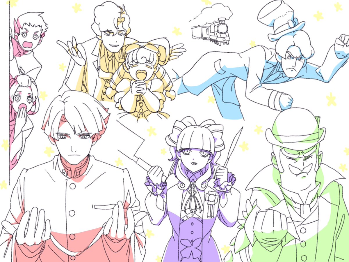 大逆裁に出てくるキャラみんな好きすぎて描ききれない落書き