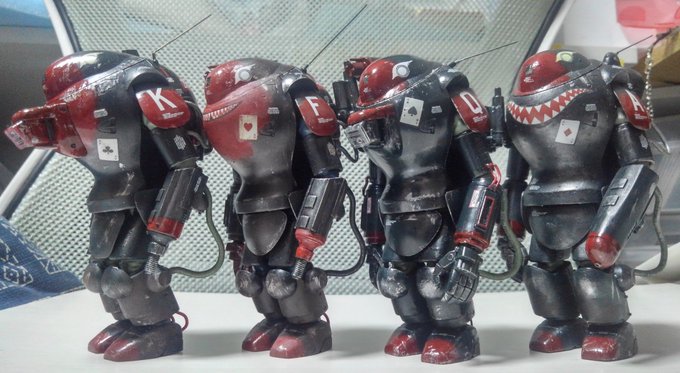 ナイトストーカーもうひとつも完成。 弄った顔は思ったよりはいい感じになったかな・・・ 寄せ集めデカールが足りなくなっていく・・・(笑) #マシーネンクリーガー #ひろがれマシーネンの輪
